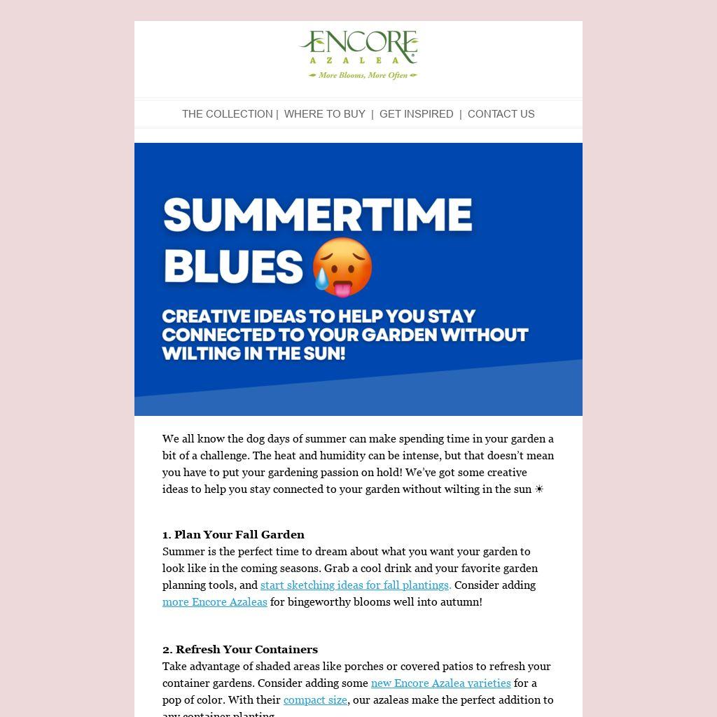 We hope these ideas help you beat the summer blues and stay connected to your gardening passion. Don’t forget to share your creative projects with us on social media using #EncoreAzalea!