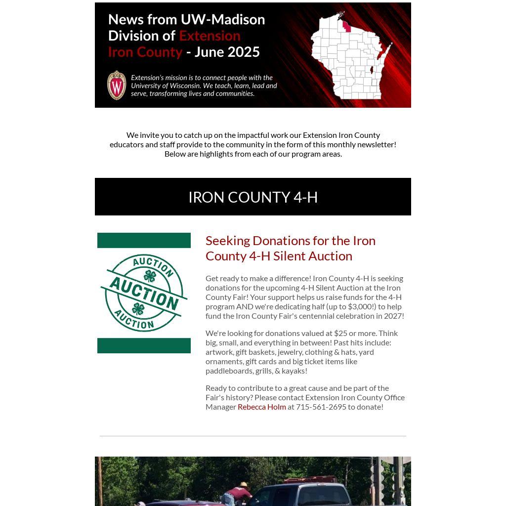 Get ready to make a difference! Iron County 4-H is seeking donations for the upcoming 4-H Silent Auction at the Iron County Fair! Your support helps us raise funds for the 4-H program AND we're dedicating half (up to $3,000!) to help fund the Iron County Fair's centennial celebration in 2027!