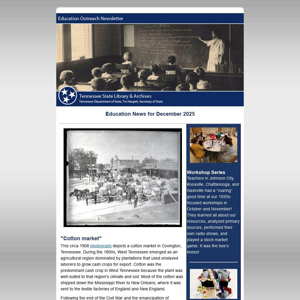 Join us at the Tennessee Council for the Social Studies Conference!The Tennessee Council for the Social Studies (TCSS) is having its annual conference on February 26 and 27, 2026, at the Hilton Memphis. The theme this year is “250 Years Strong: Civic Engagement from the Revolution to Today.” There will be 36 breakout sessions, as well as exhibitors and door prizes.