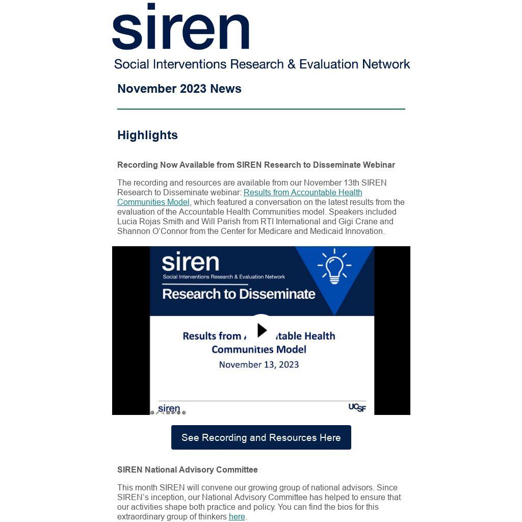 Recording Now Available from SIREN Research to Disseminate Webinar