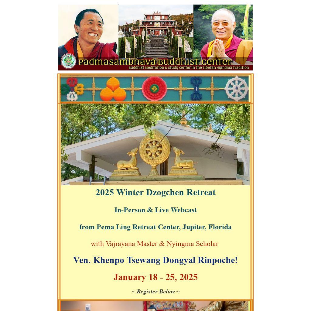 • 10:30am - 12:30pm EST: Dzogchen teachings and meditation with Ven. Khenpo Tsewang Dongyal Rinpoche