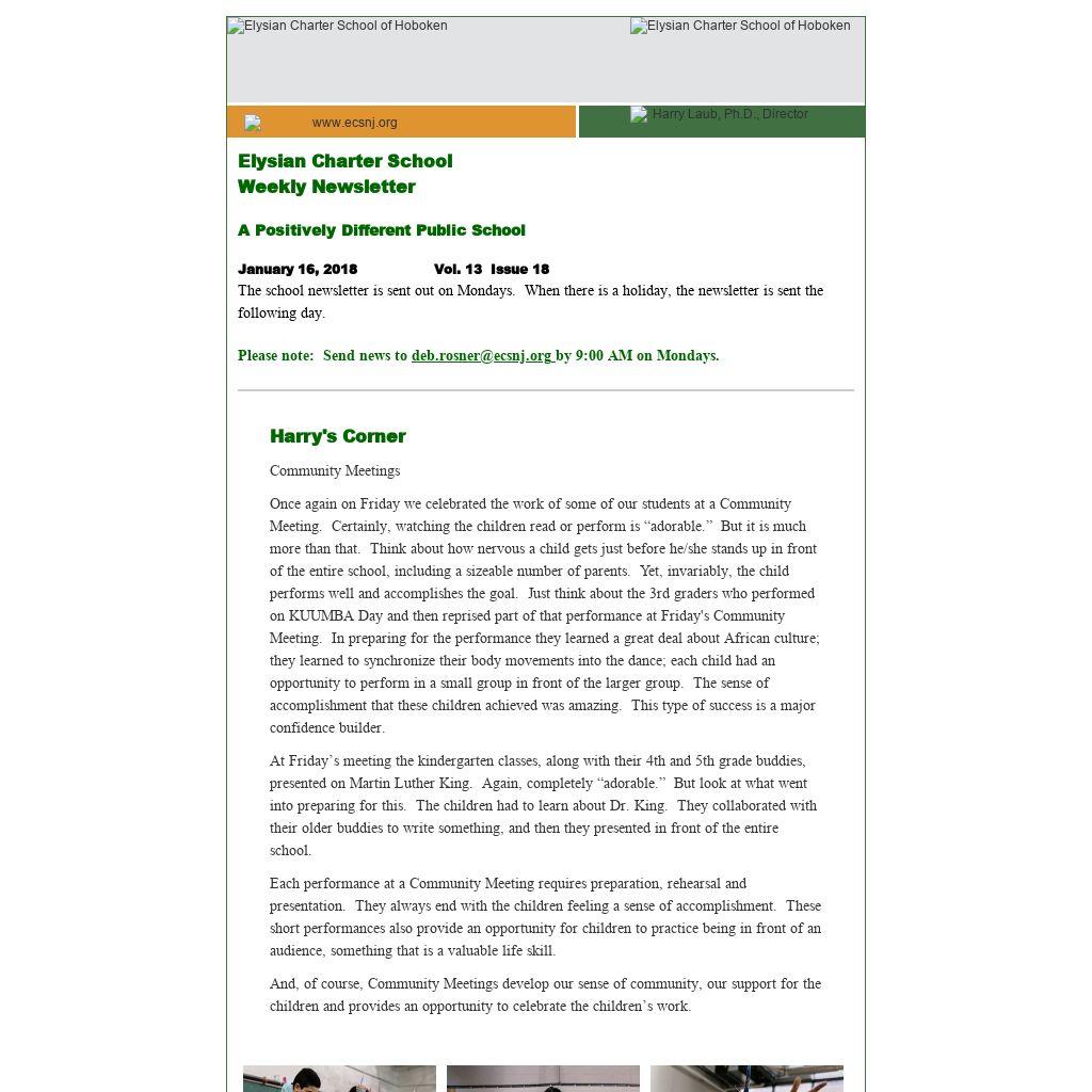 The school newsletter is sent out on Mondays. When there is a holiday, the newsletter is sent the following day.