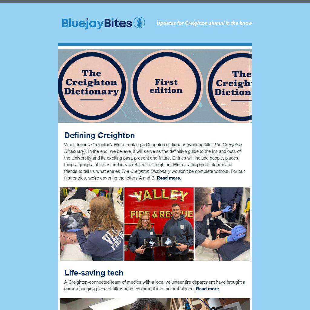 What defines Creighton? We’re making a Creighton dictionary (working title: The Creighton Dictionary). In the end, we believe, it will serve as the definitive guide to the ins and outs of the University and its exciting past, present and future. Entries will include people, places, things, groups, phrases and ideas related to Creighton. We’re calling on all alumni and friends to tell us what entries The Creighton Dictionary wouldn’t be complete without. For our first entries, we’re covering the letters A and B. Read more.