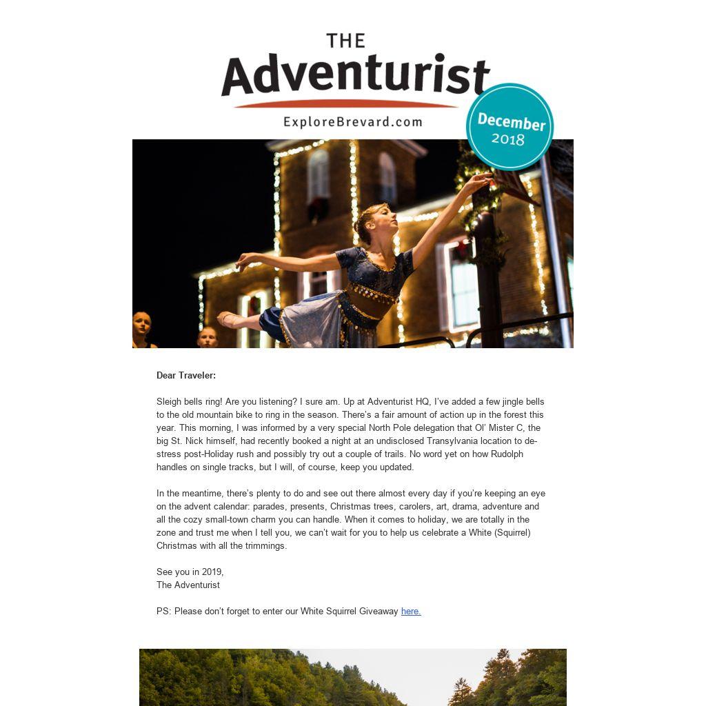 You’re free to celebrate the season whatever way you see fit, but Santa suggests that you shake, rattle and roll into Brevard for this year’s Christmas Parade and Twilight Tour. This year’s parade celebrates old and new traditions with a “Remembering the Past, Embracing the Future” theme. After Santa concludes the parade, stick around as downtown Brevard is transformed into a sparkling winter wonderland as part of the Twilight Tour, where the Yulest of the Yule can enjoy live music, carriage rides, yummy treats and lots more.