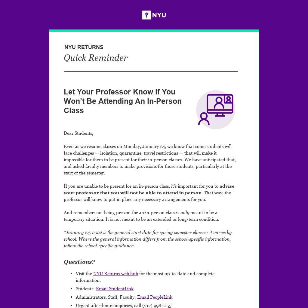 Let Your Professor Know If You Won’t Be Attending An In-Person Class