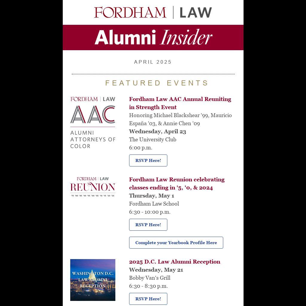 Thank you to everyone who joined us at the Fordham Law Annual Luncheon this past month! The Luncheon is always a wonderful opportunity for all members of the Fordham Law community to gather and reconnect. This event could not be a success without your presence.