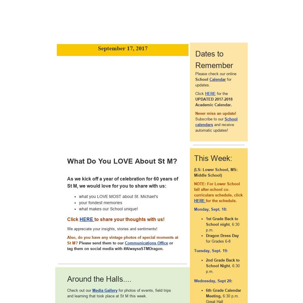 Get connected to keep abreast of St M news, events, calendar changes and information.