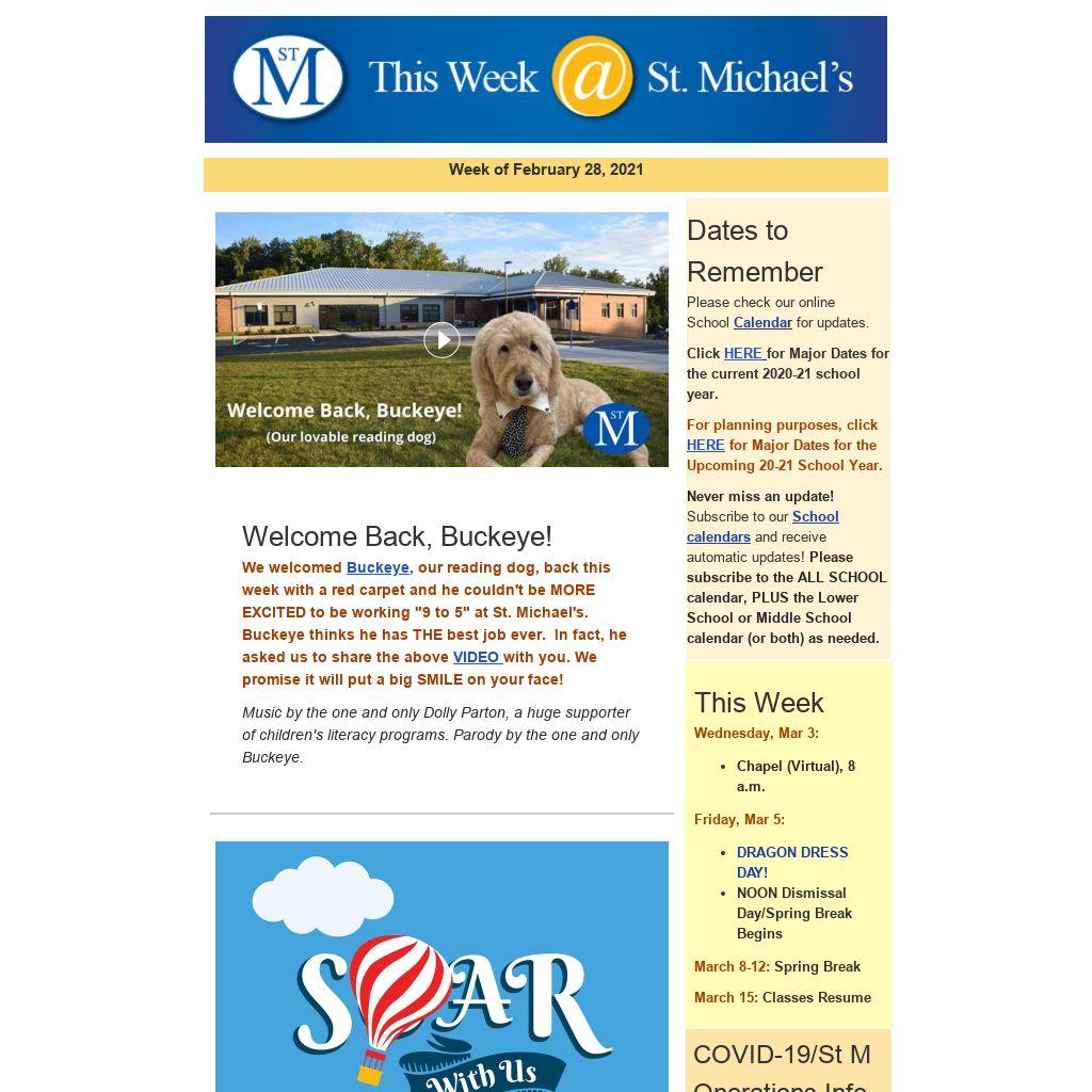 Current and past issues of "This Week at St. Michael's" are now archived on our website under "News and Events," as well as under "Community."