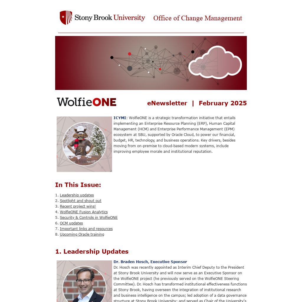 ICYMI: WolfieONE is a strategic transformation initiative that entails implementing an Enterprise Resource Planning (ERP), Human Capital Management (HCM) and Enterprise Performance Management (EPM) ecosystem at SBU, supported by Oracle Cloud, to power our financial, budget, HR, technology, and business operations. Key drivers, besides moving from on-premise to cloud-based modern systems, include improving employee morale and institutional reputation.
