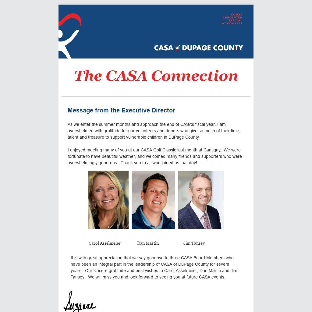 Alison was a member of the first online training class. It was a little more challenging than usual, as these new advocates were unable to meet the CASA staff or other advocates in person. However, she was sworn in and quickly appointed to her first case. She was still involved with that case a few months ago, when she saw the opening for a part time advocate supervisor posiition at DuPage CASA. She is now the newest staff member at CASA DuPage, supervising advocates and supporting the program team by developing weekly advocate alerts, along with training and continuing education support activities.