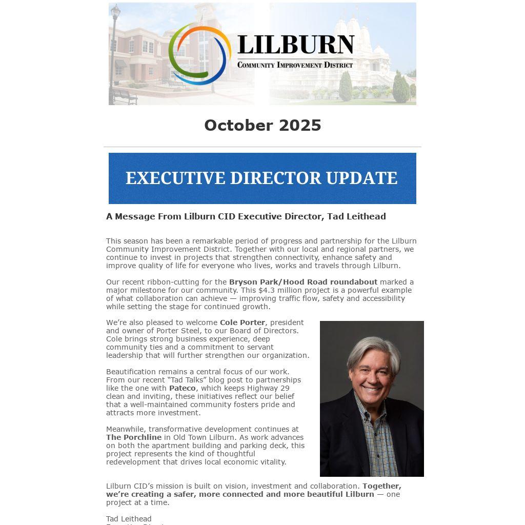 A Message From Lilburn CID Executive Director, Tad Leithead |