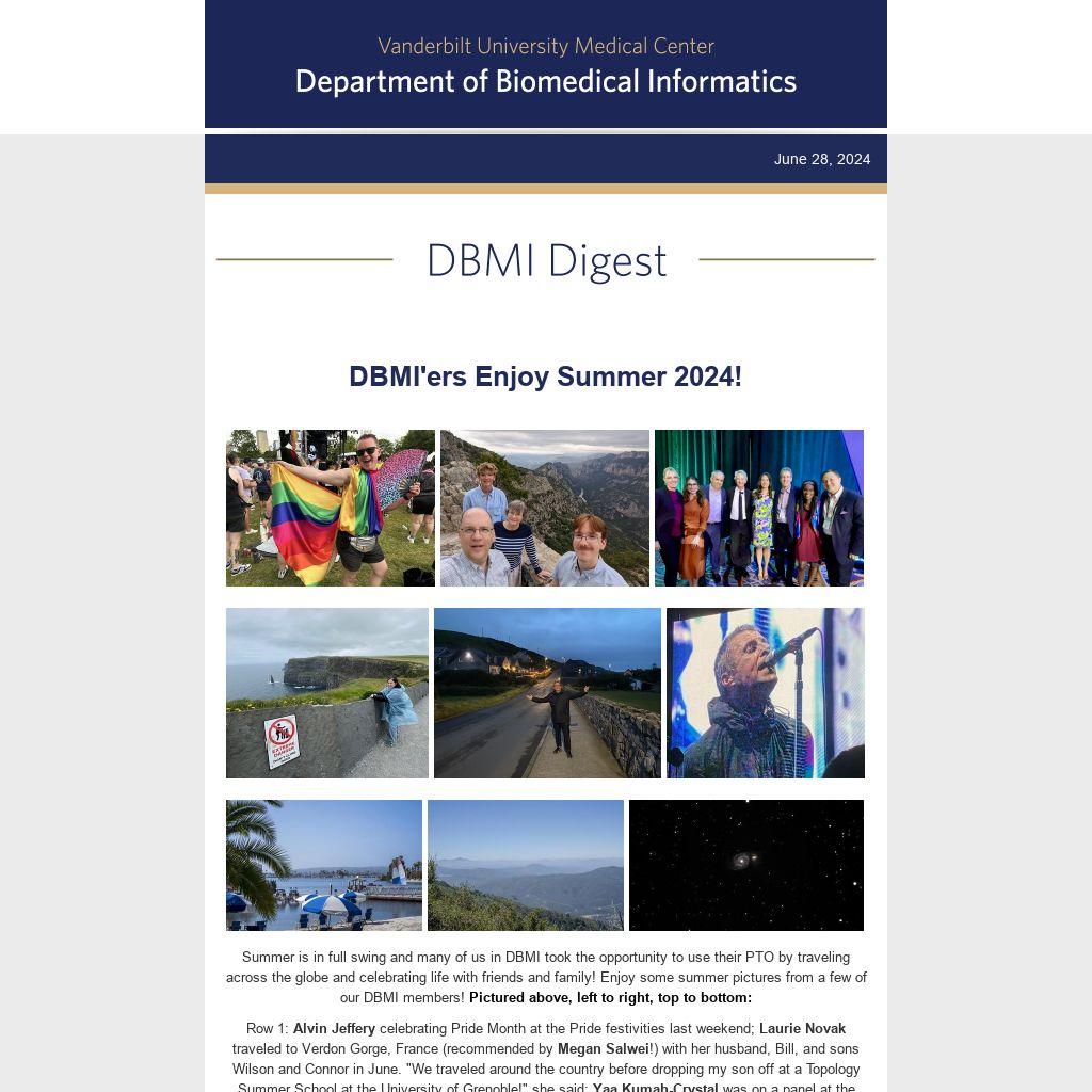 Summer is in full swing and many of us in DBMI took the opportunity to use their PTO by traveling across the globe and celebrating life with friends and family! Enjoy some summer pictures from a few of our DBMI members! Pictured above, left to right, top to bottom: