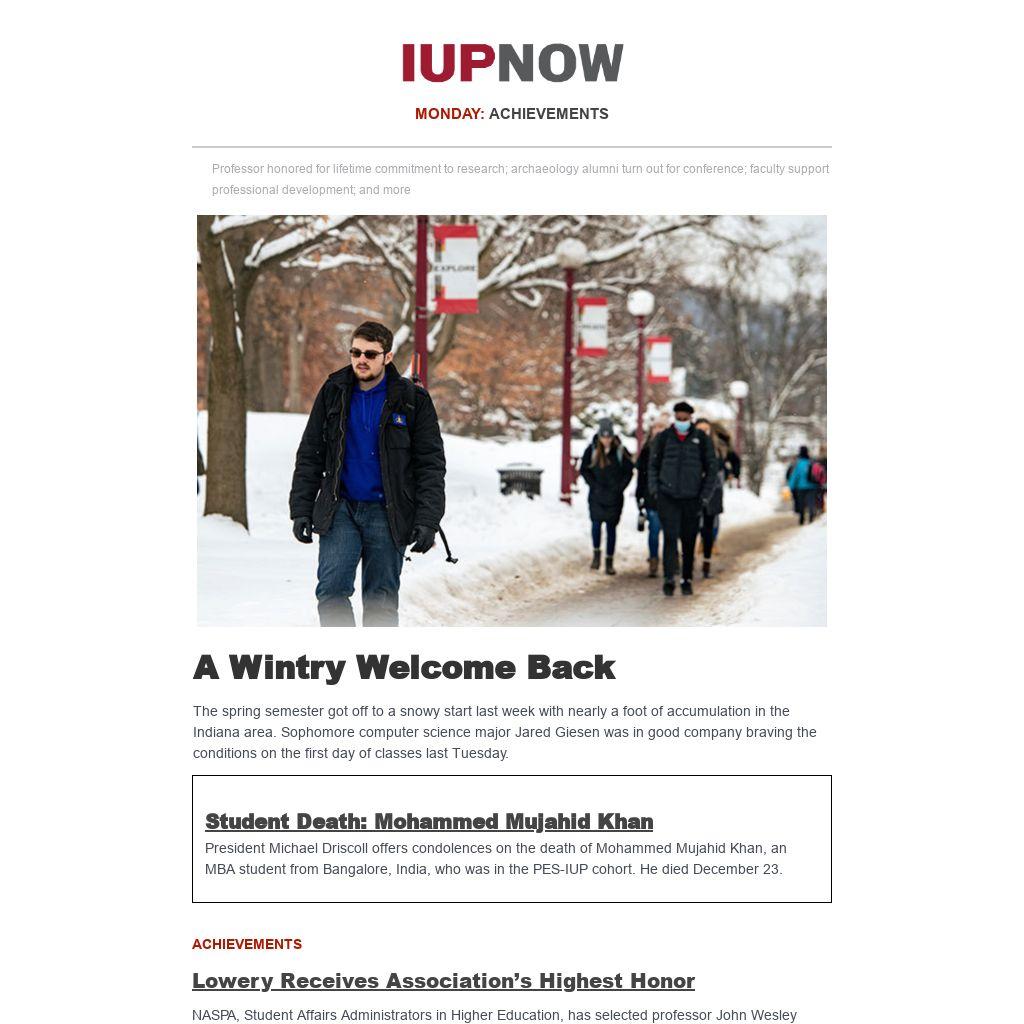 The spring semester got off to a snowy start last week with nearly a foot of accumulation in the Indiana area. Sophomore computer science major Jared Giesen was in good company braving the conditions on the first day of classes last Tuesday.