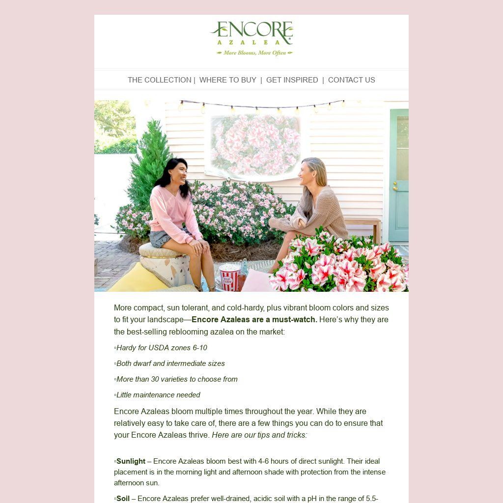 With a little care, your Encore Azaleas will thrive and provide you with years of beauty. This is a series that you can binge-watch without feeling guilty!