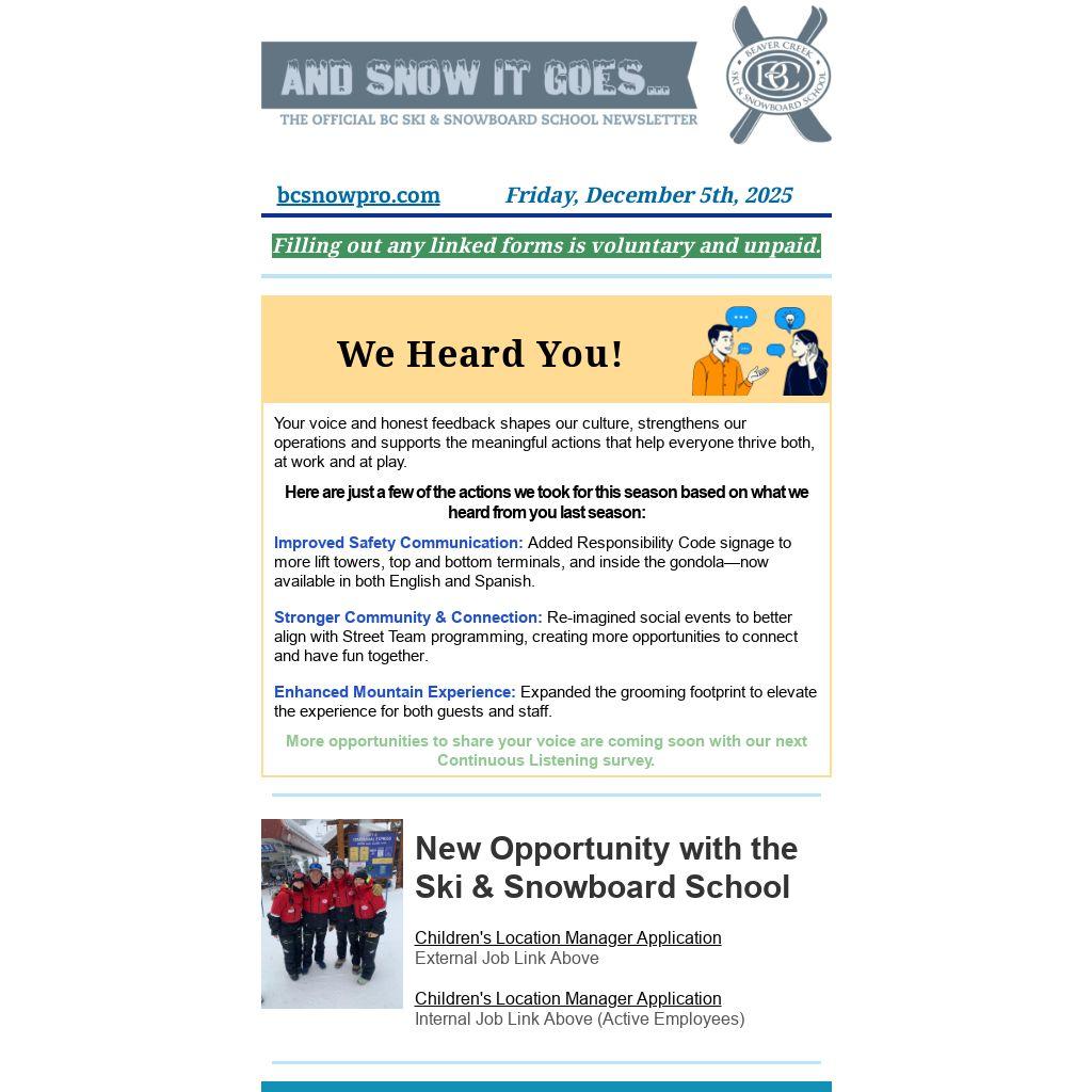 Beaver Creek Ski & Snowboard School sends many important employee communications via this platform. Please do not unsubscribe from these messages.