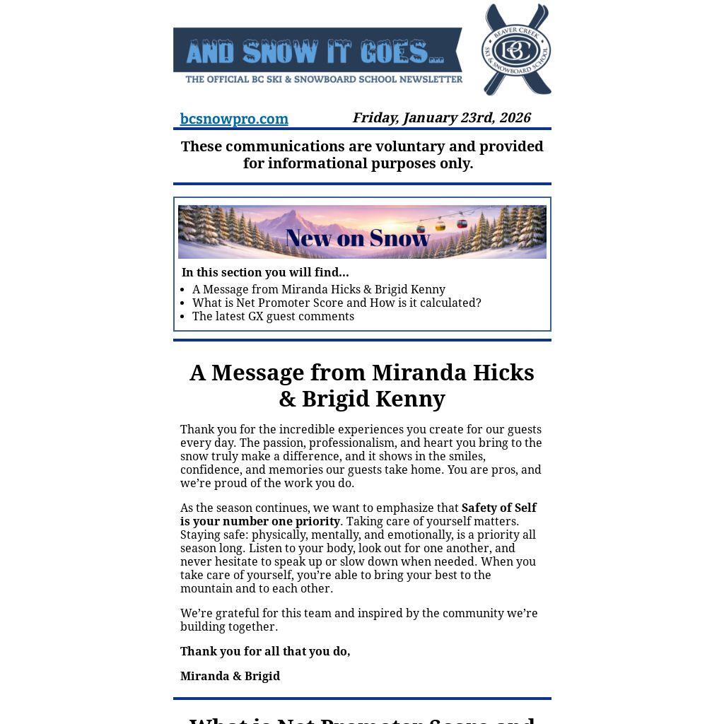 Beaver Creek Ski & Snowboard School sends many important employee communications via this platform. Please do not unsubscribe from these messages.