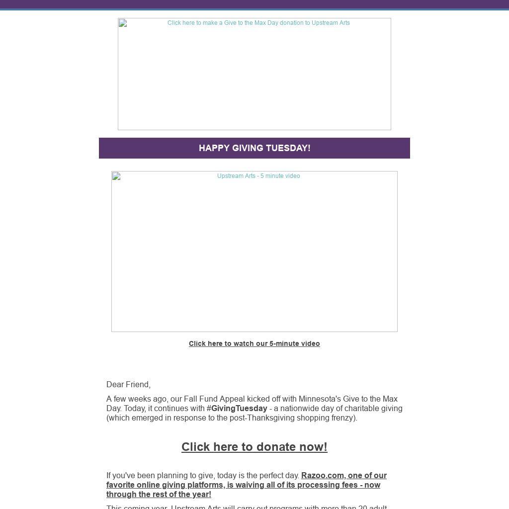 A few weeks ago, our Fall Fund Appeal kicked off with Minnesota's Give to the Max Day. Today, it continues with #GivingTuesday - a nationwide day of charitable giving (which emerged in response to the post-Thanksgiving shopping frenzy).