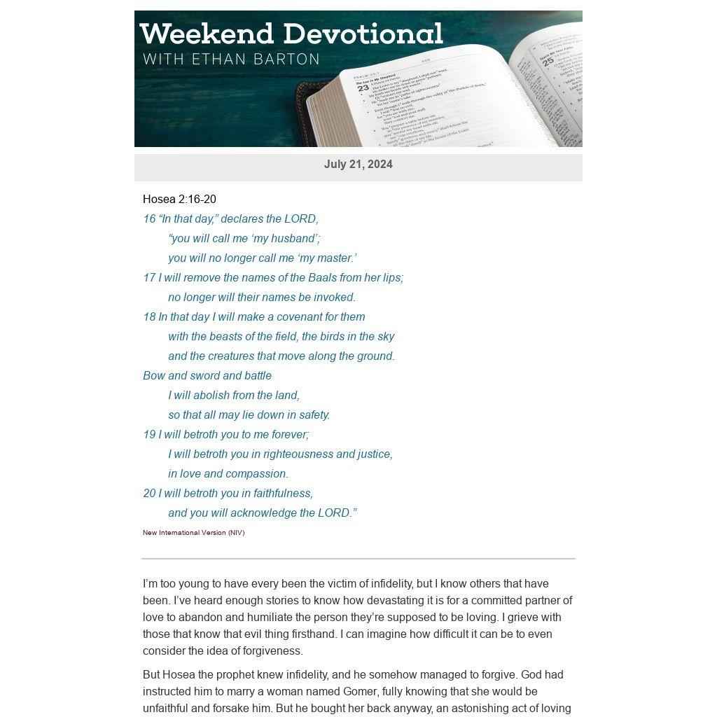 But Hosea the prophet knew infidelity, and he somehow managed to forgive. God had instructed him to marry a woman named Gomer, fully knowing that she would be unfaithful and forsake him. But he bought her back anyway, an astonishing act of loving grace in order to accomplish astonishing redemption. God used this as a demonstration of his own grace for his people the Israelites. They were likewise drastically unfaithful against their loving God and deserved full judgment, and yet God was astonishingly gracious to buy them back, love them just the same, and redeem them in beautiful ways. From the example of Hosea, we see just how amazing God’s amazing grace really is.