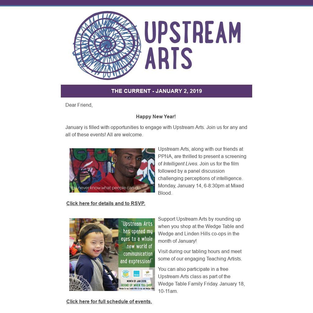 Support Upstream Arts by rounding up when you shop at the Wedge Table and Wedge and Linden Hills co-ops in the month of January!
