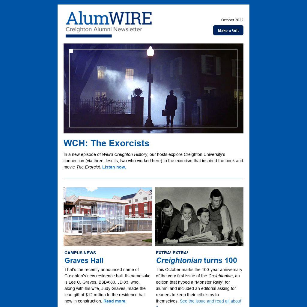 In a new episode of Weird Creighton History, our hosts explore Creighton University’s connection (via three Jesuits, two who worked here) to the exorcism that inspired the book and movie The Exorcist. Listen now.