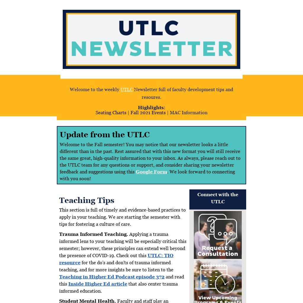 Trauma Informed Teaching. Applying a trauma informed lens to your teaching will be especially critical this semester; however, these principles can extend well beyond the presence of COVID-19. Check out this UTLC: TIO resource for the do's and don'ts of trauma informed teaching, and for more insights be sure to listen to the Teaching in Higher Ed Podcast episode 372 and read this Inside Higher Ed article that also center trauma informed education.