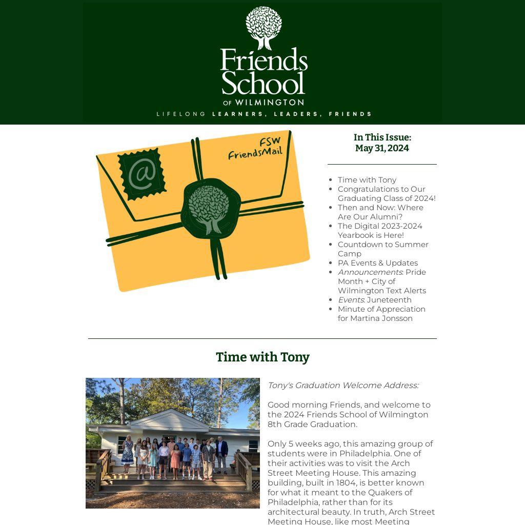 Good morning Friends, and welcome to the 2024 Friends School of Wilmington 8th Grade Graduation.