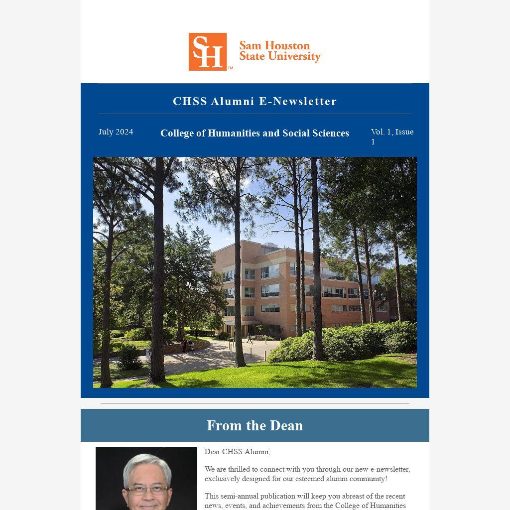 This semi-annual publication will keep you abreast of the recent news, events, and achievements from the College of Humanities and Social Sciences. Whether it's a story about faculty, staff, and student success, or an opportunity to get involved, we hope to keep you informed and engaged with the vibrant community you helped build.