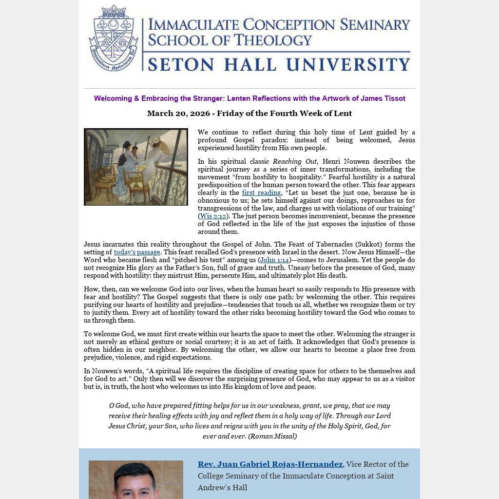 In Nouwen’s words, “A spiritual life requires the discipline of creating space for others to be themselves and for God to act.” Only then will we discover the surprising presence of God, who may appear to us as a visitor but is, in truth, the host who welcomes us into His kingdom of love and peace.