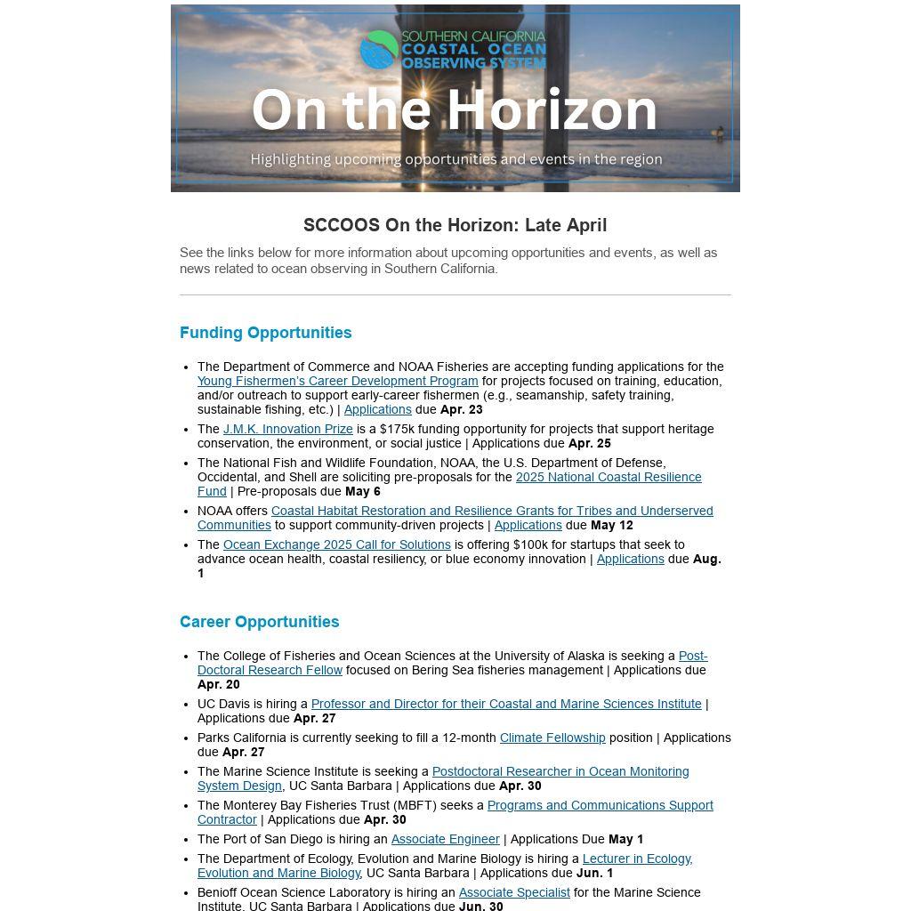 - CA Sea Grant is accepting host applications for the 2026 Grant State Fellowship program - open to coastal or marine municipal, state + federal agencies, research/conservation organizations in CA | Applications due May 30