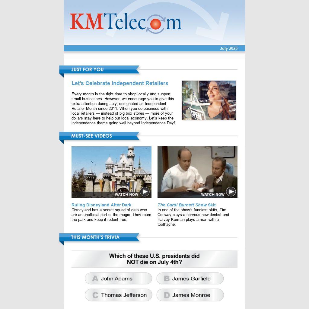 Every month is the right time to shop locally and support small businesses. However, we encourage you to give this extra attention during July, designated as Independent Retailer Month since 2011. When you do business with local retailers — instead of big box stores — more of your dollars stay here to help our local economy. Let's keep the independence theme going well beyond Independence Day! |