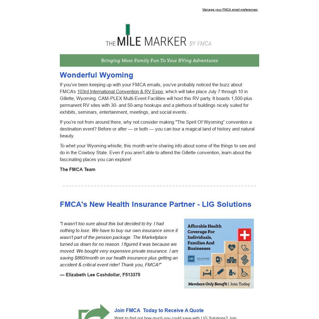 Feeling inspired to hit the road and check out all that Wyoming has to offer? Don't forget to hit the road with an FMCA membership, now available for our lowest price available - 30% off! Click here to join FMCA.