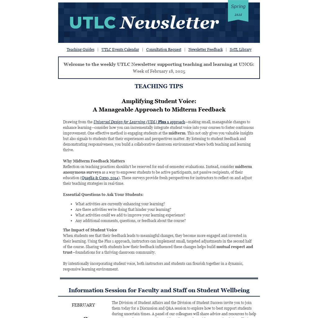 Welcome to the weekly UTLC Newsletter supporting teaching and learning at UNCG: