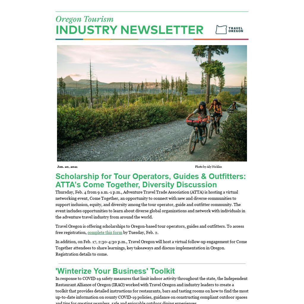 In addition, on Feb. 17, 2:30-4:30 p.m., Travel Oregon will host a virtual follow-up engagement for Come Together attendees to share learnings, key takeaways and discuss implementation in Oregon. Registration details to come.