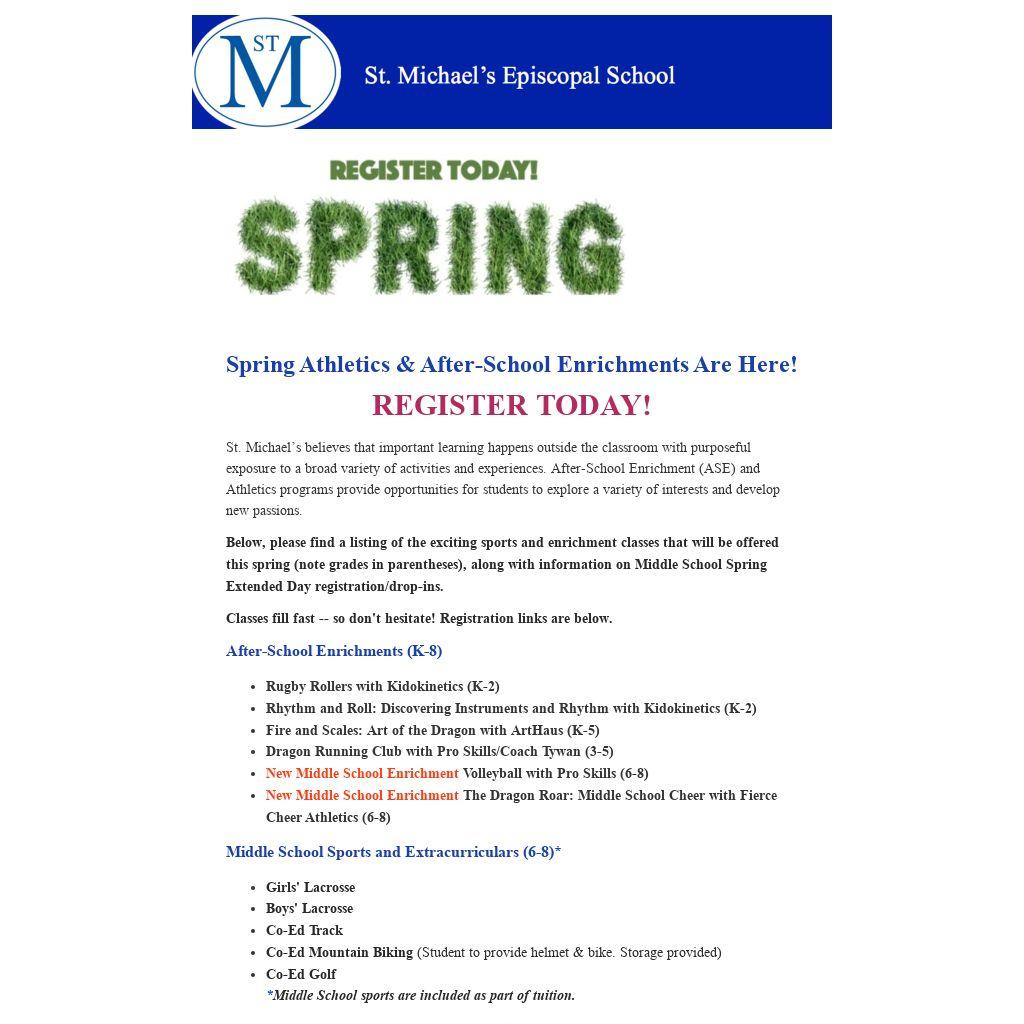 Extended Day is CLOSED on the following spring holidays: Mar 7 & 10-14, Apr 7, 18 & 21, May 5 & 26