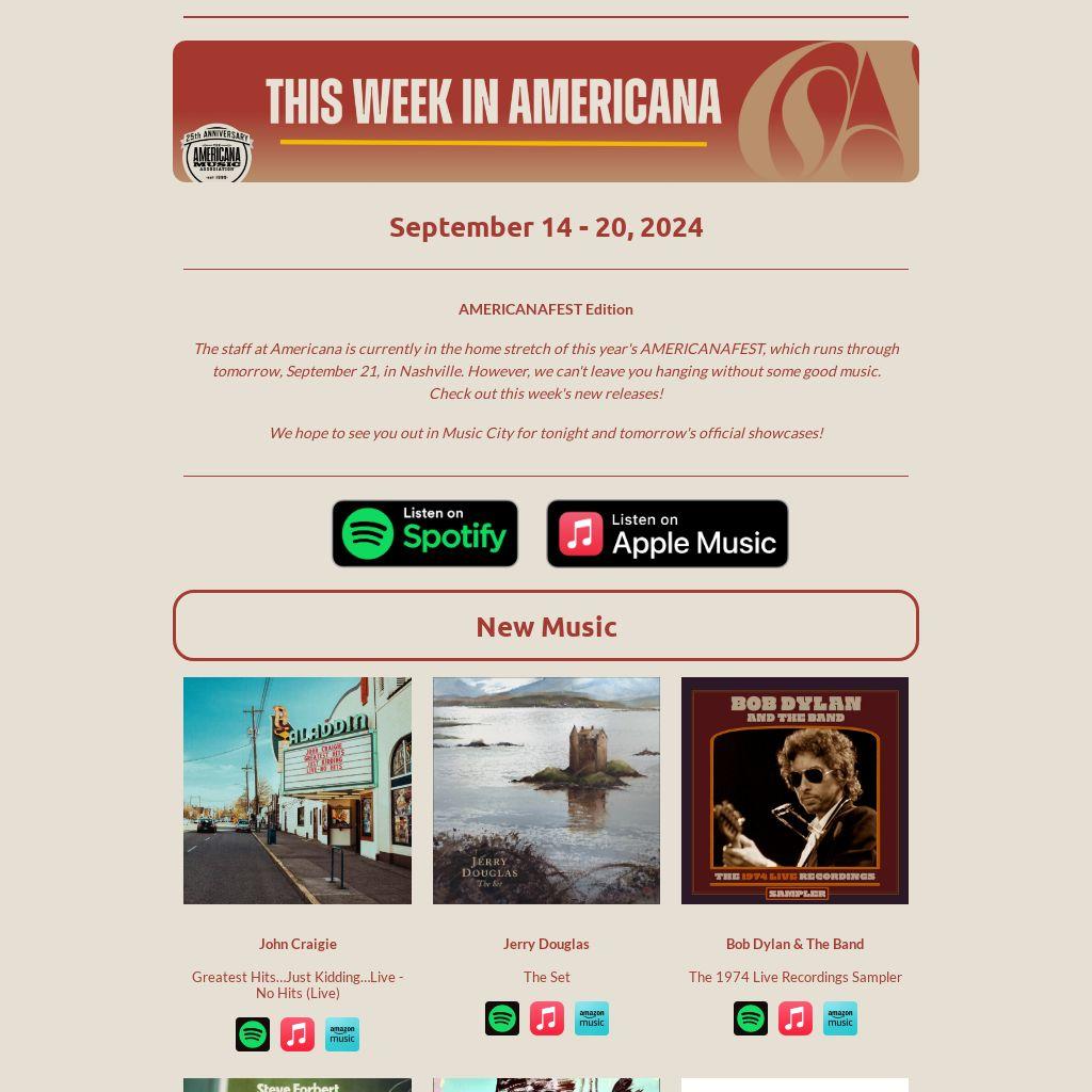 The staff at Americana is currently in the home stretch of this year's AMERICANAFEST, which runs through tomorrow, September 21, in Nashville. However, we can't leave you hanging without some good music.