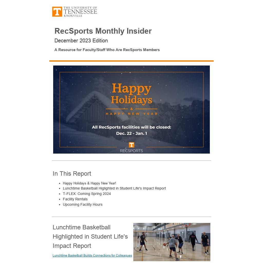 Lunchtime Basketball is available to all faculty/staff who have an active RecSports membership! Great way to make connections with other departments. All skill levels are welcome!