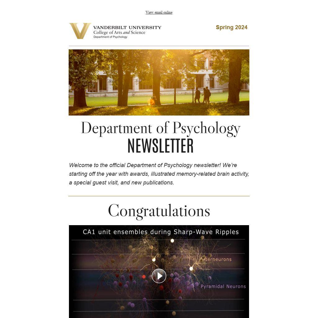 Welcome to the official Department of Psychology newsletter! We’re starting off the year with awards, illustrated memory-related brain activity, a special guest visit, and new publications.