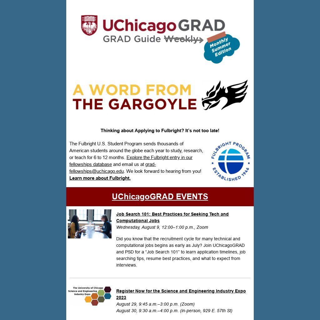 Did you know that the recruitment cycle for many technical and computational jobs begins as early as July? Join UChicagoGRAD and PSD for a “Job Search 101” to learn application timelines, job searching tips, resume best practices, and what to expect from interviews.