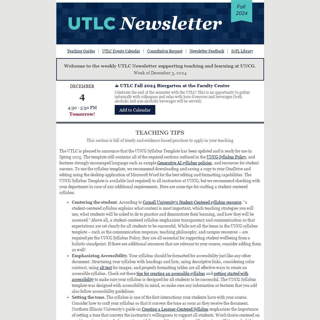 Welcome to the weekly UTLC Newsletter supporting teaching and learning at UNCG.