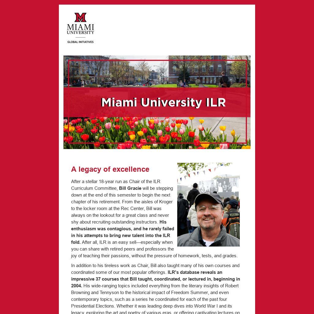 Bill’s contributions to ILR cannot be overstated. His work helped shape ILR and ensured that each term was filled with engaging, enriching, and enlightening opportunities for all. We are deeply grateful for his service and the legacy of excellence he leaves behind.