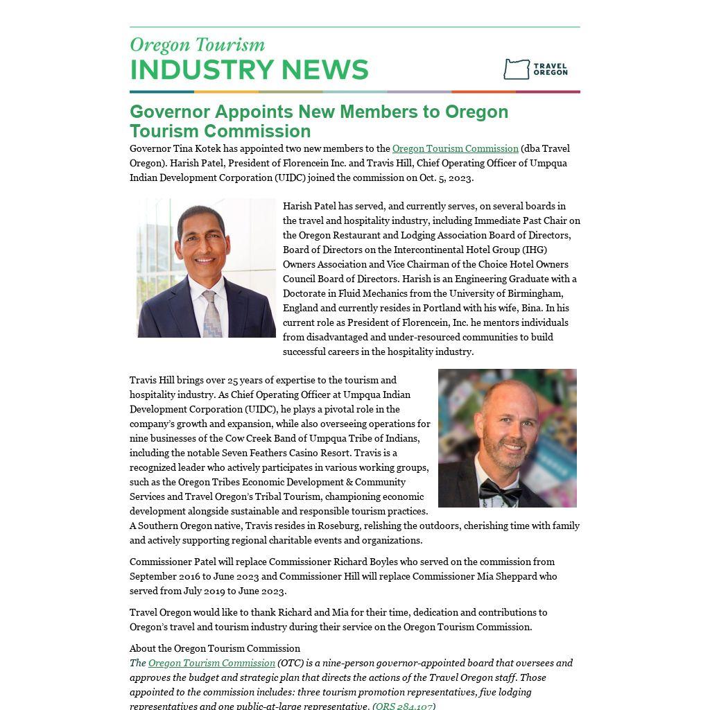 Travel Oregon would like to thank Richard and Mia for their time, dedication and contributions to Oregon’s travel and tourism industry during their service on the Oregon Tourism Commission.