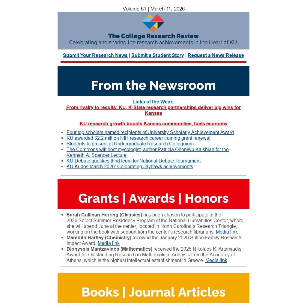 The Office of Research invites proposals for three internal funding opportunities designed to support KU faculty establishing their research programs, pivoting existing research to align with new funding agency priorities, or developing collaborative research projects that span the Lawrence and Medical Center campuses.