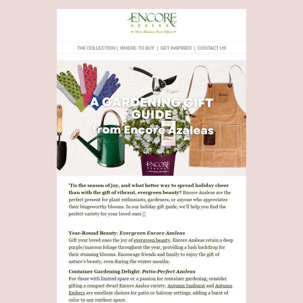 This holiday season, give the gift of lasting blooms with Encore Azaleas. Whether you’re shopping for seasoned gardeners or those just starting their gardening journey, there’s an Encore Azalea variety that’s sure to bring joy and color to their lives. Happy gifting, and may your holidays be as bright as the bingeworthy blooms in your garden! 🎄