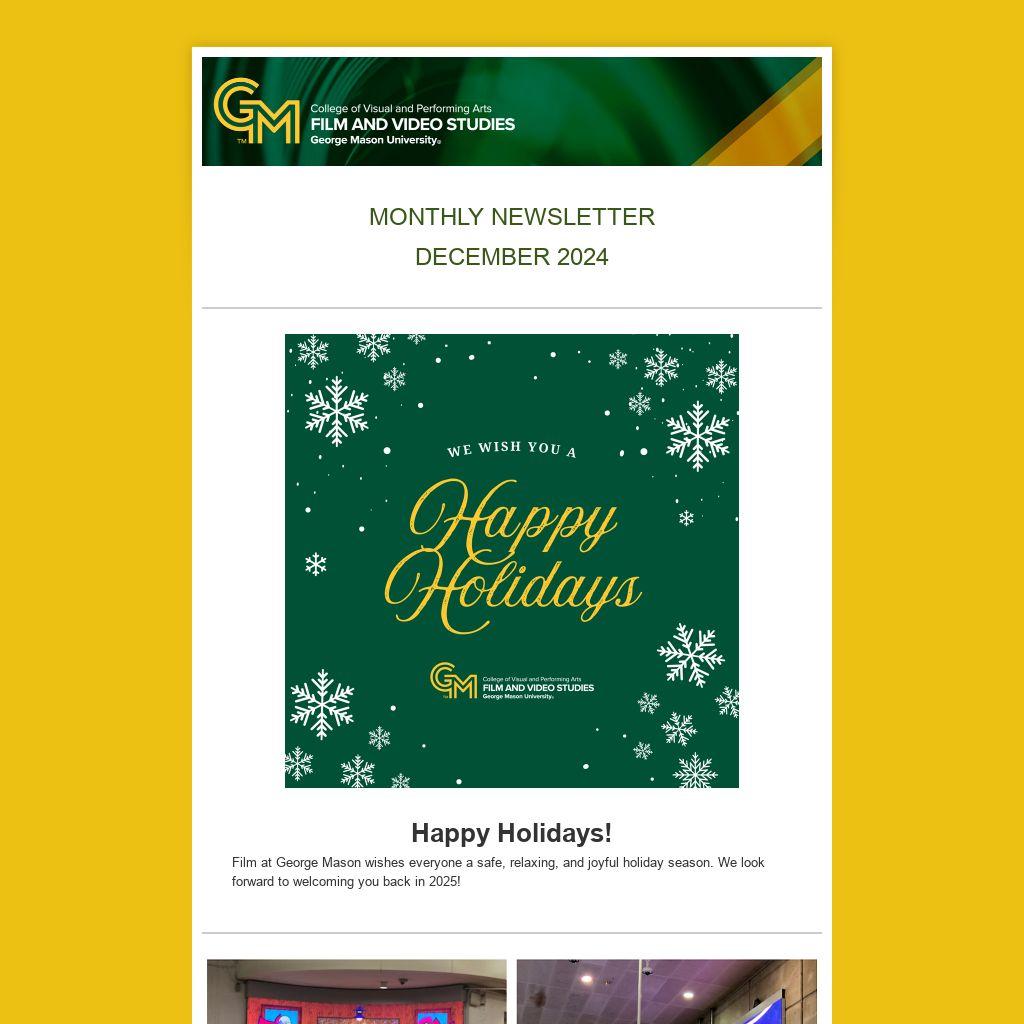 Film at George Mason wishes everyone a safe, relaxing, and joyful holiday season. We look forward to welcoming you back in 2025!