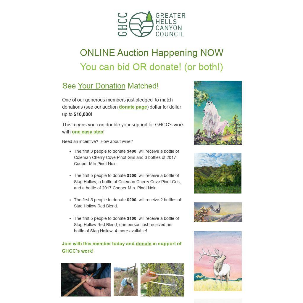 One of our generous members just pledged  to match donations (see our auction donate page) dollar for dollar up to $10,000!
