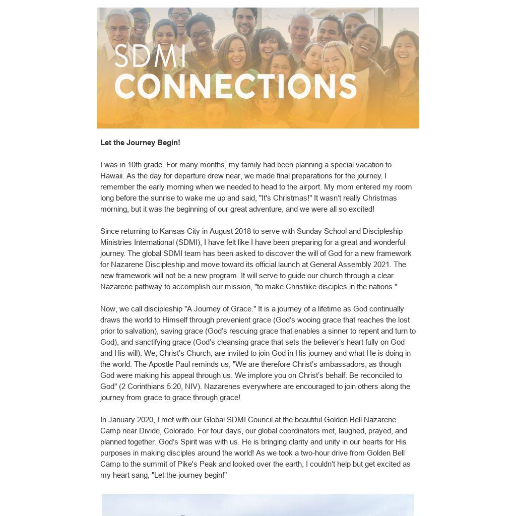 Since returning to Kansas City in August 2018 to serve with Sunday School and Discipleship Ministries International (SDMI), I have felt like I have been preparing for a great and wonderful journey. The global SDMI team has been asked to discover the will of God for a new framework for Nazarene Discipleship and move toward its official launch at General Assembly 2021. The new framework will not be a new program. It will serve to guide our church through a clear Nazarene pathway to accomplish our mission, "to make Christlike disciples in the nations."