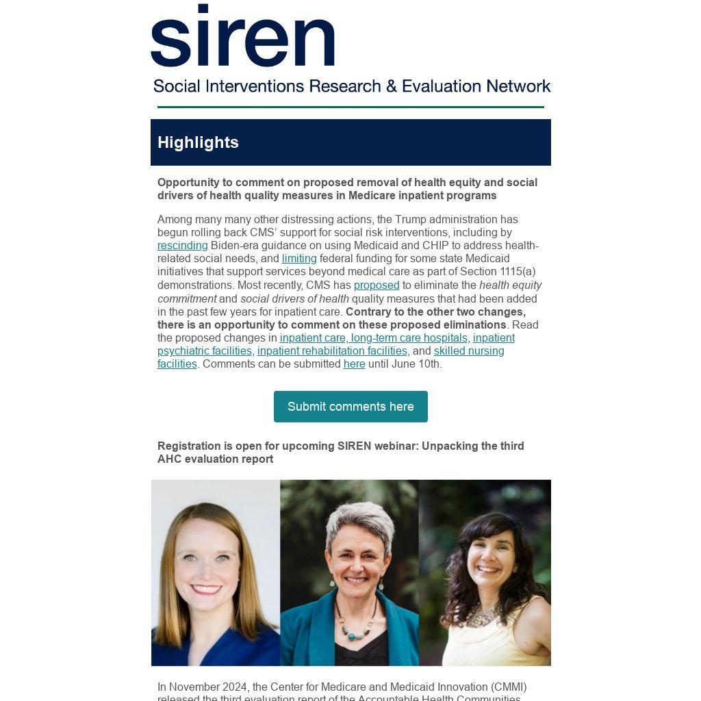 SIREN: Unpacking the Third AHC Evaluation Report – May 8, 2025 | 11am-12pm PT/ 2-3pm ET