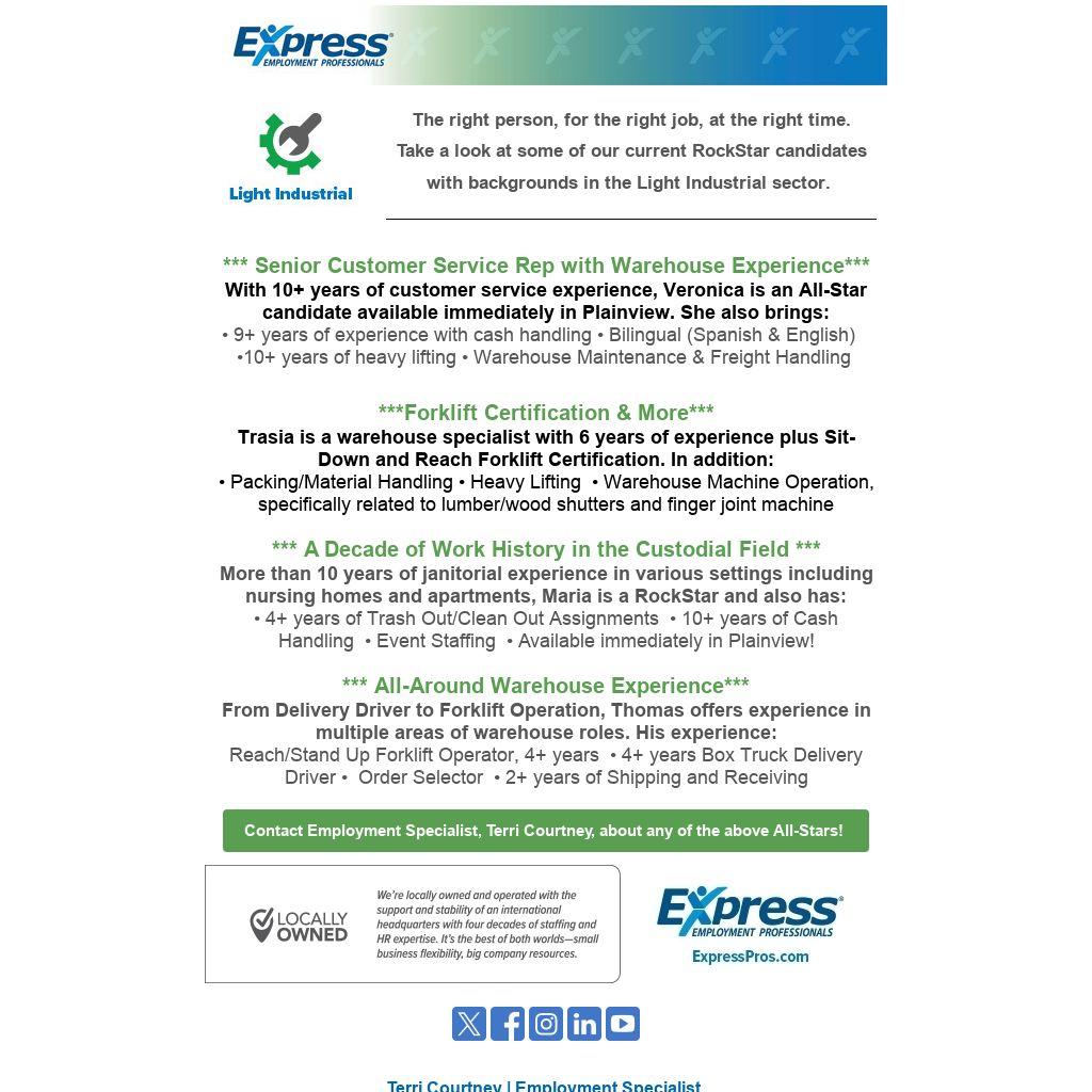 Take a look at some of our current RockStar candidates with backgrounds in the Light Industrial sector.