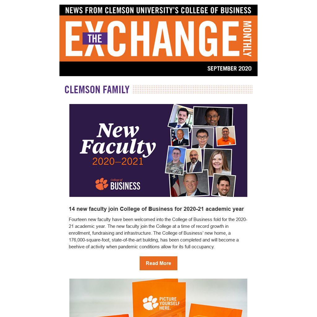 The College of Business’ general scholarship fund has received a boost from Clemson University’s Office of Human Resources as a result of an innovative recruiting campaign it created. HR’s Talent Acquisition team recently won the College and University Professional Association’s (CUPA) HR Innovation Award. The award, attributed to HR’s “Picture Yourself Here” campaign, includes a $5,000 prize, which will be directed to the business school’s general scholarship fund.