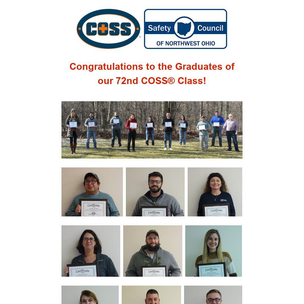 The Safety Council of Northwest Ohio is pleased to announce the 72nd graduating class of its curriculum-based certification for